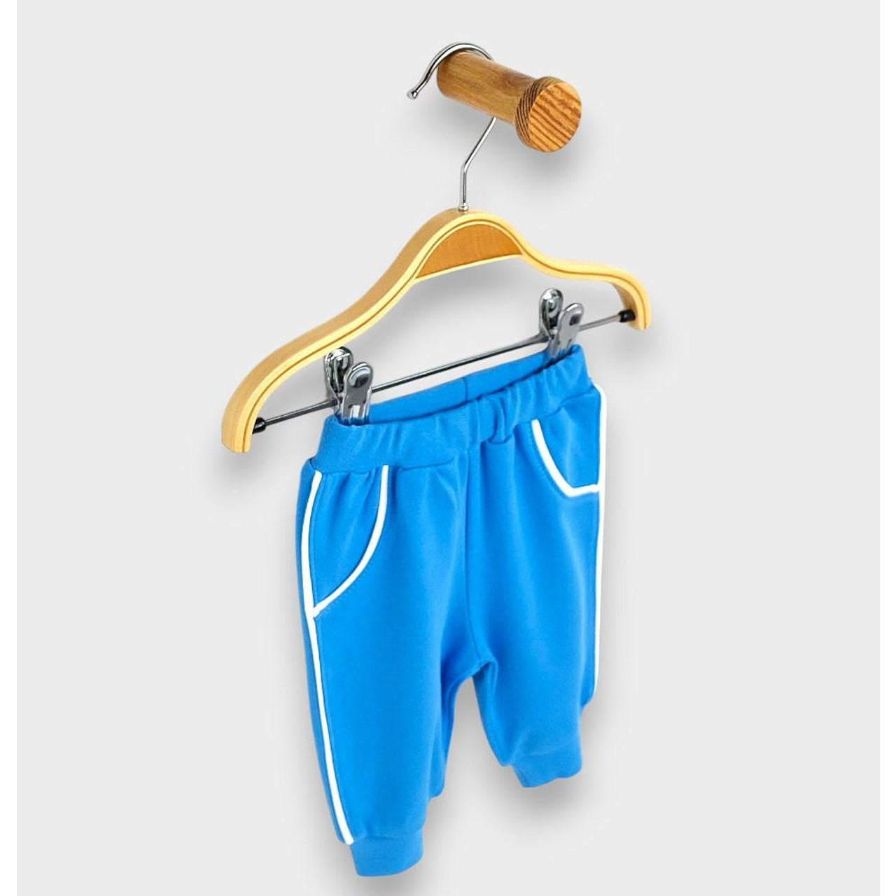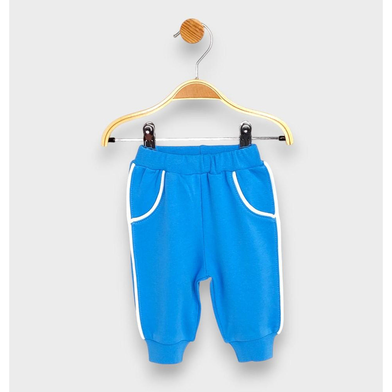 Защо да не добавим цвят и уют в ежедневието на вашето мъниче с "Rainy Бебешки дълъг панталон с кант 62-92 см. "? Този очарователен панталон е идеалният избор за активните дни на вашето дете, съчетавайки стил и комфорт в едно.