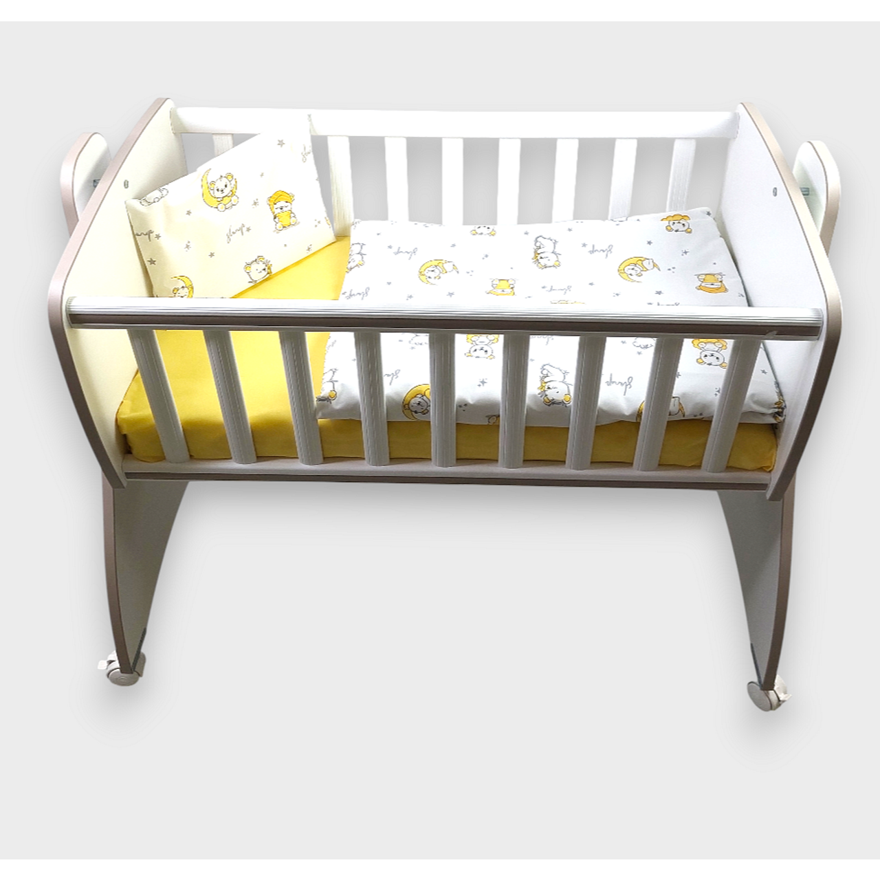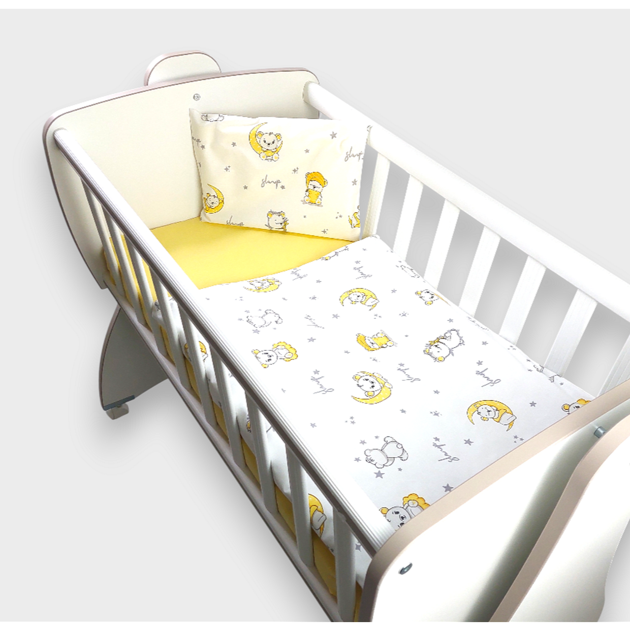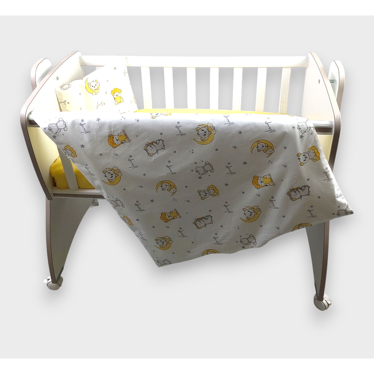 Rainy Бебешки спален комплект 3 части за мини кошара и люлка Мече на жълта луна