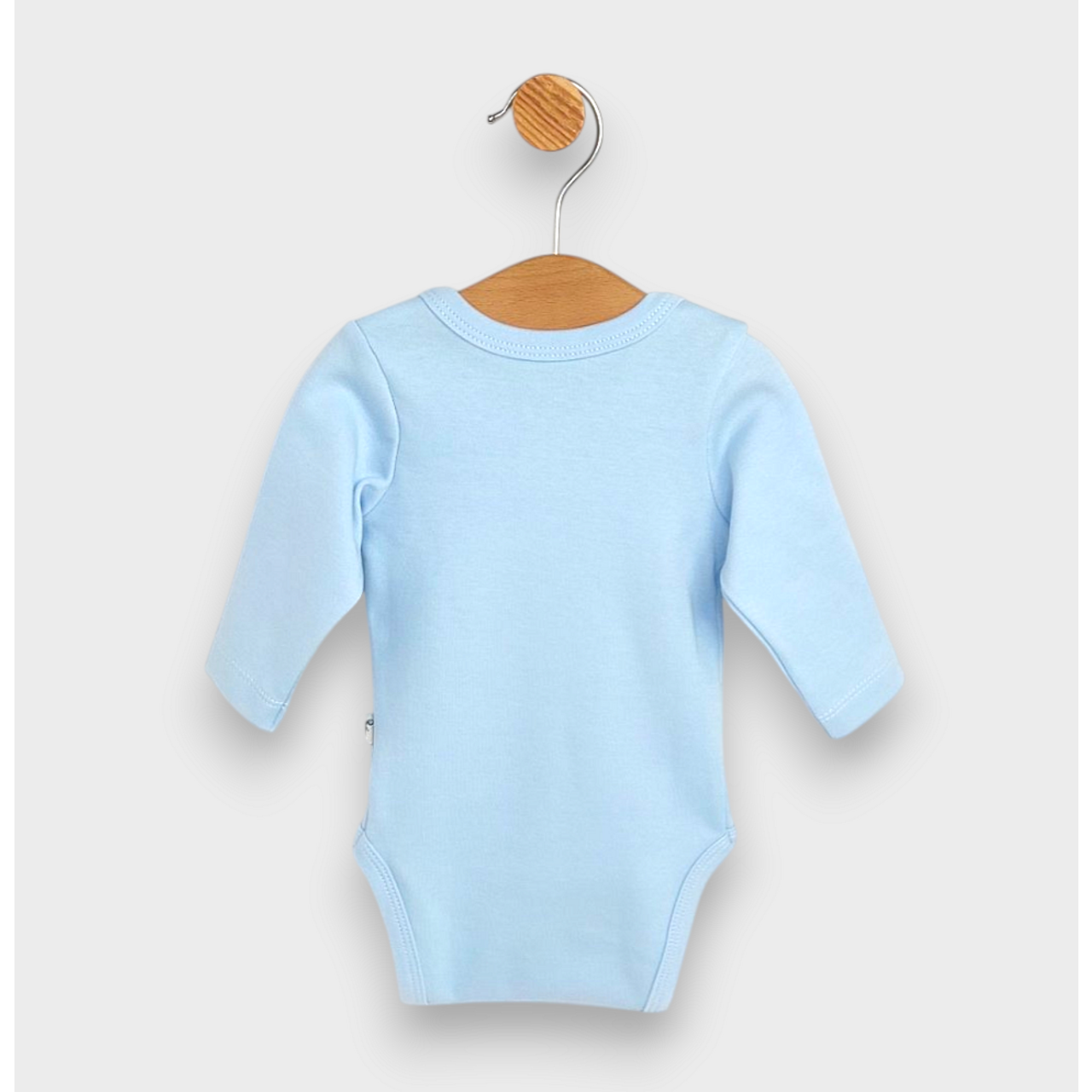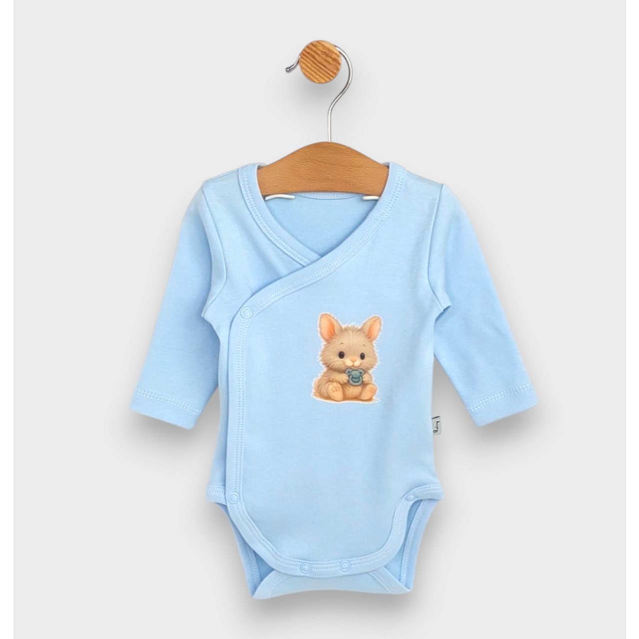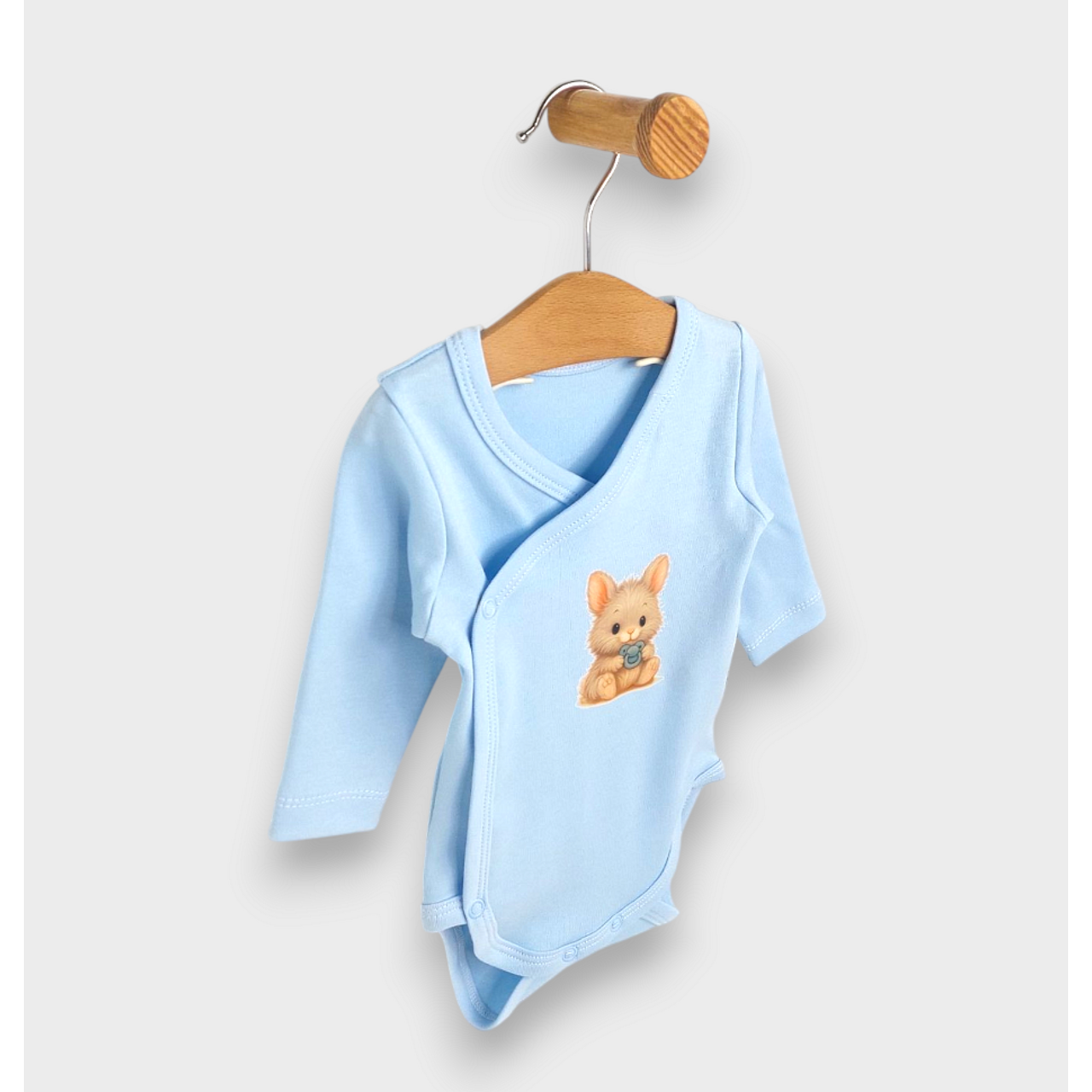 Бебешко боди с дълъг ръкав Baby Bunny от нежна и мека материя. Удобно закопчаване, посредством тик-так копчета за лесна смяна на пелени. Изработена от 100% памучна материя, щадяща деликатната бебешка кожа. С весела и закачлива картинка. Бебешкото боди се предлага от новородено до 9 месечна възраст. Произведено от българския бранд Rainy.