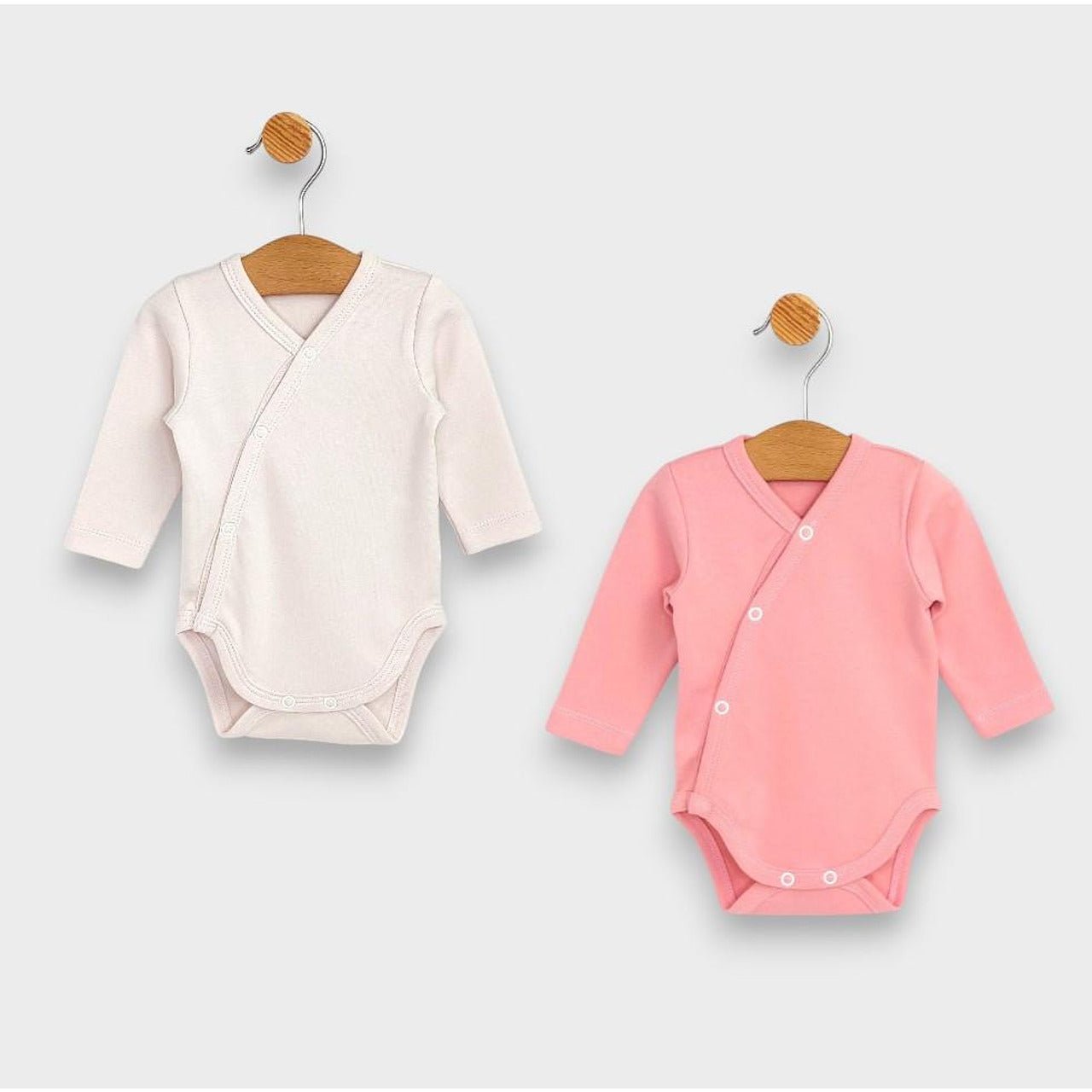 Комплект бодита 2 бодита от нежна и мека материя в пастелни цветове. Удобно закопчаване, посредством тик-так копчета за лесна смяна на пелени. Изработена от 100% памучна материя, щадяща деликатната бебешка кожа. Бебешкото боди се предлага от новородено до 6 месечна възраст. Произведено от българския бранд Rainy.