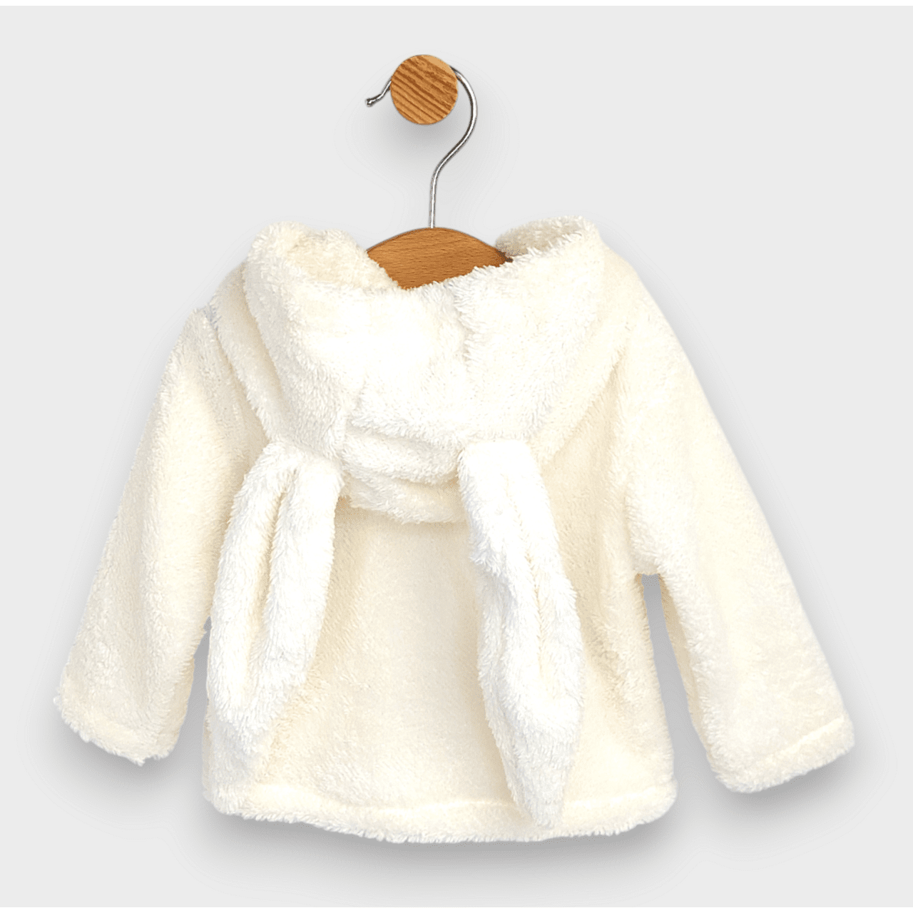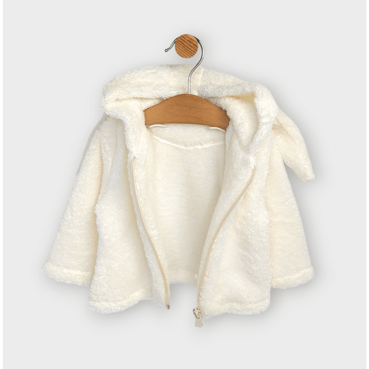 Бебешка ко-поларена жилетка с предно закопчаване и качулка от нежна и мека материя в пастелни цветове. Удобно закопчаване, посредством цип. Изработена от мека материя, щадяща деликатната бебешка кожа. Бебешката жилетка се предлага от новородено до 12 месечна възраст.