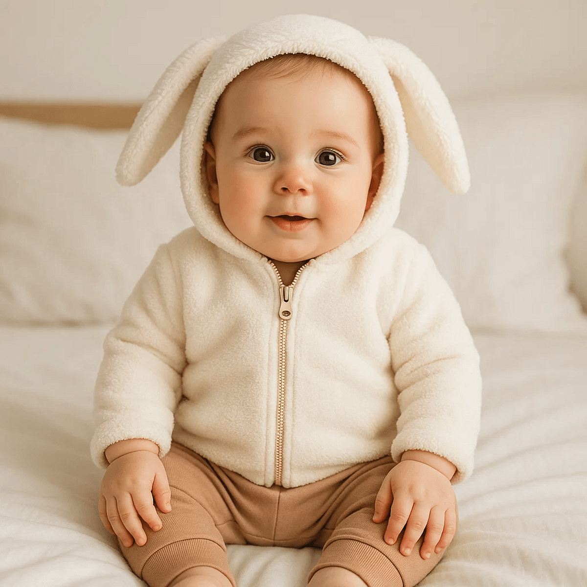 Дизайн: Качулката е с ушенца на зайче, добавяйки очарователен и фантазен акцент.