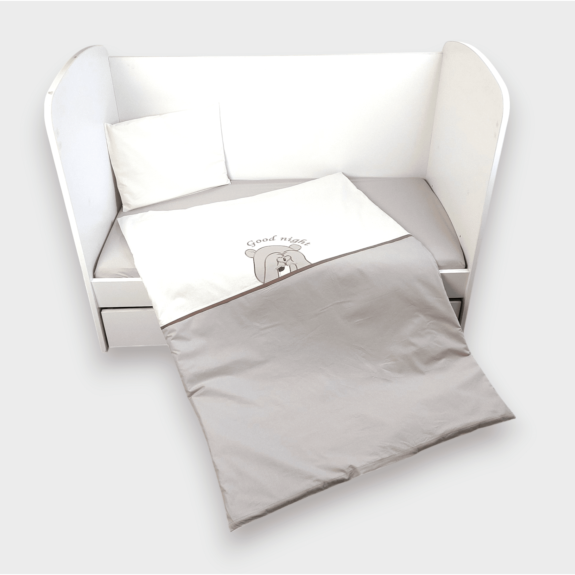 Бебешки спален комплект Love Bear е изработен от висококачествени материали в свежи цветове, които да внасят уют в детската стая. Комплекта ще пренесе малкото Ви съкровище в света на приказните сънища с лекота.