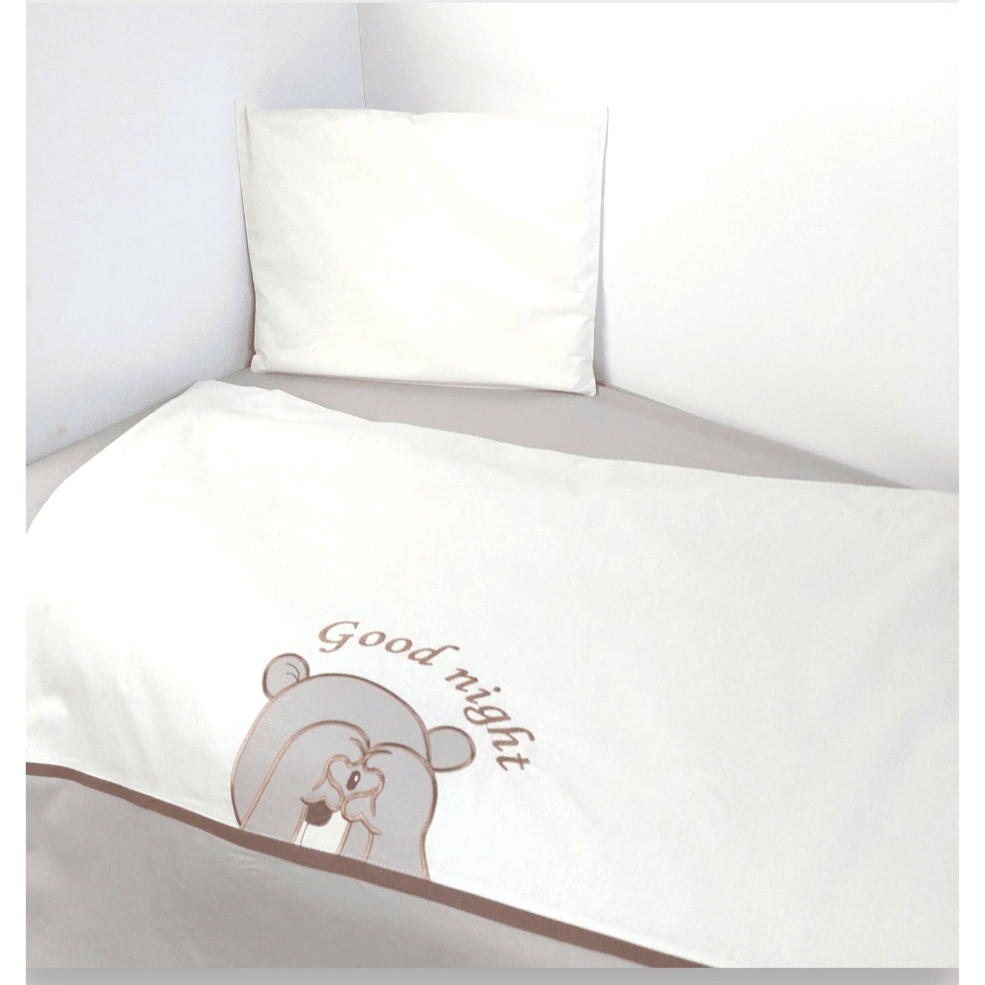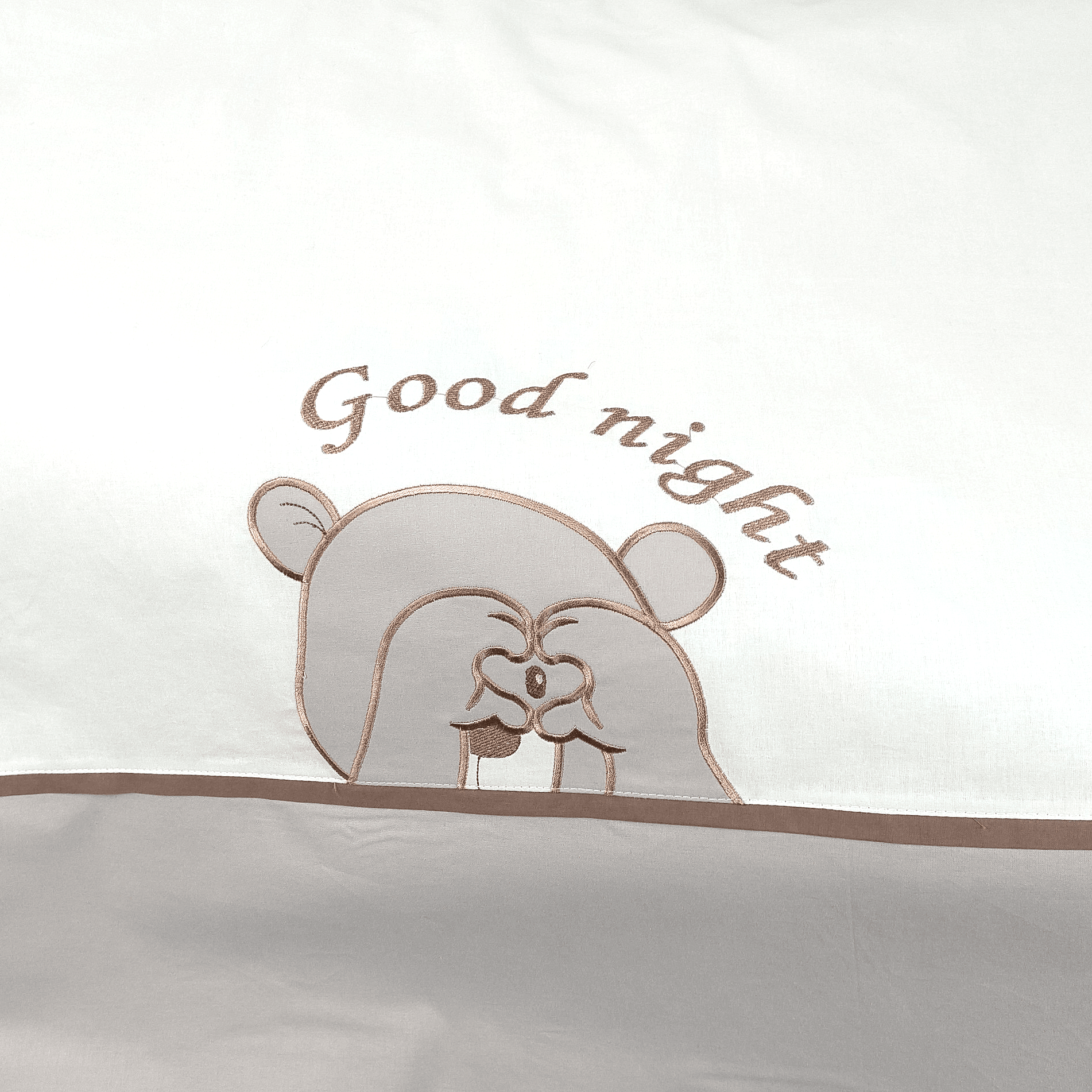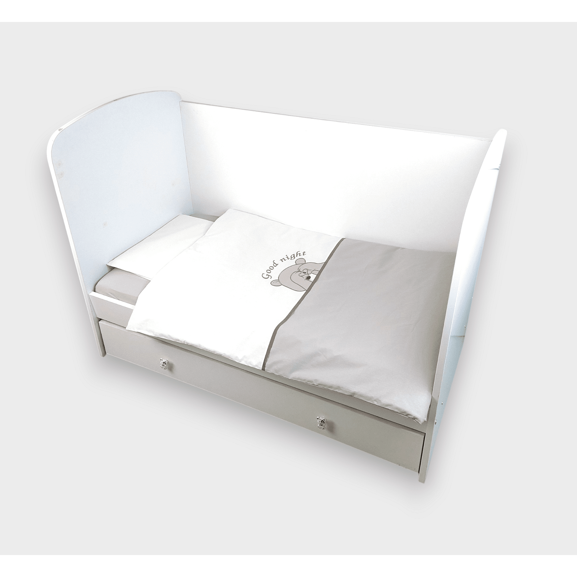 Бебешки спален комплект Love Bear е изработен от висококачествени материали в свежи цветове, които да внасят уют в детската стая. Дизайнът е стилен и оригинален. Комплекта ще пренесе малкото Ви съкровище в света на приказните сънища с лекота.