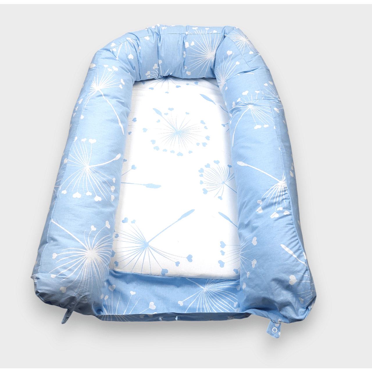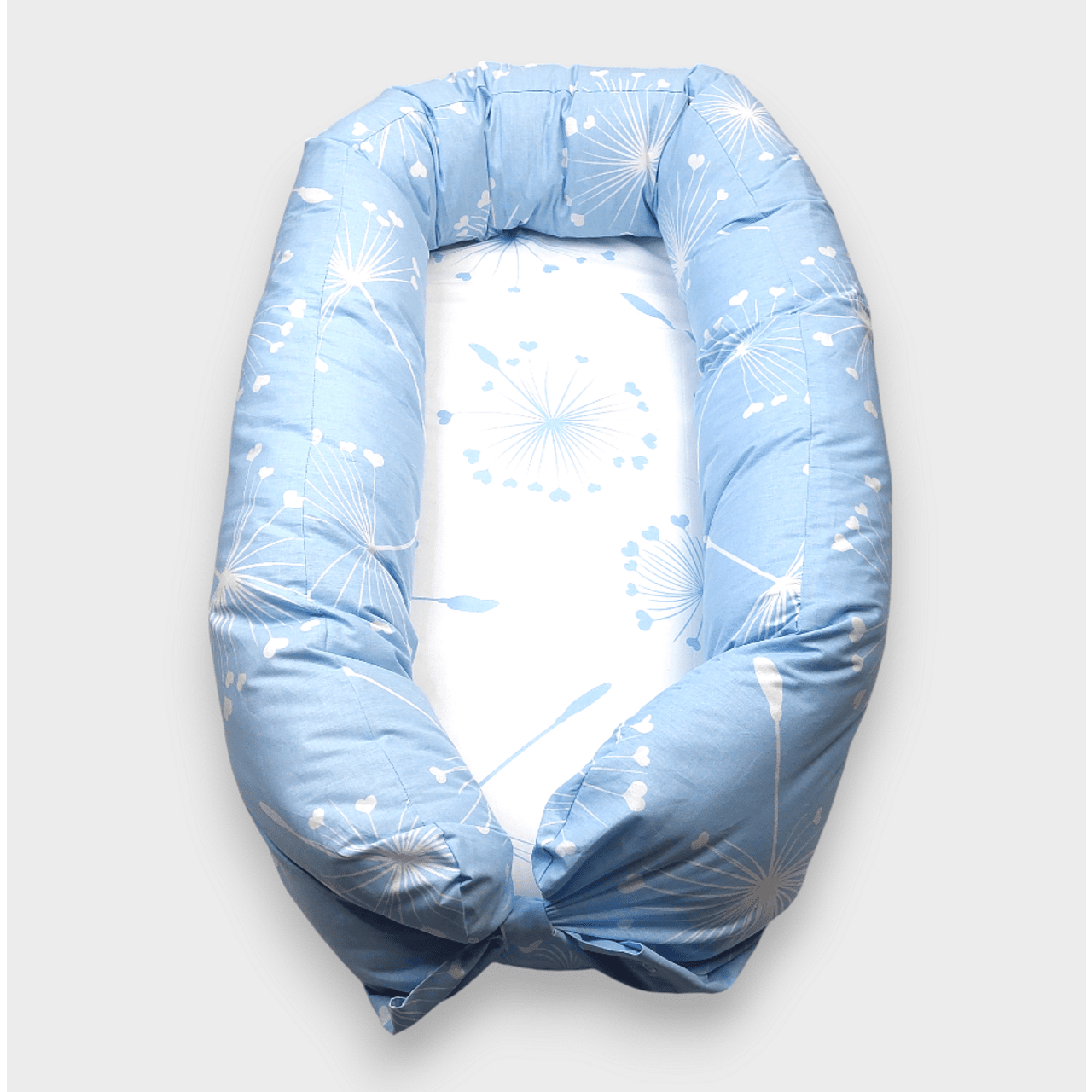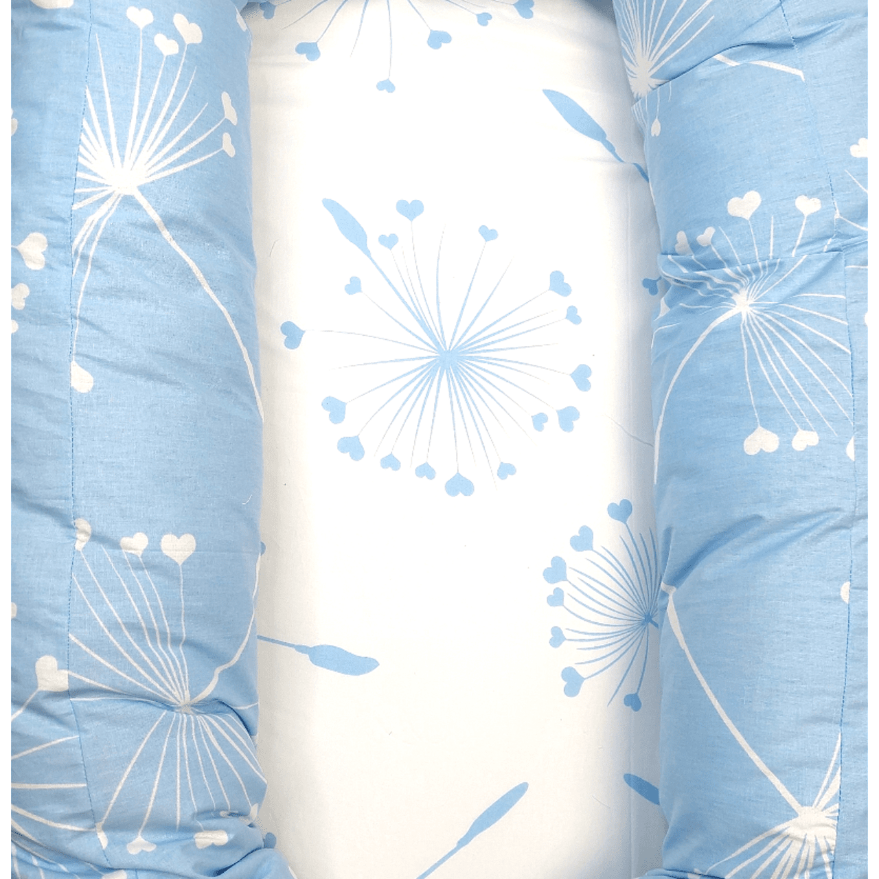 Това бебешко гнездо е създадено с мисъл за комфорта и безопасността на новороденото, като предлага меко и защитено пространство за сън и почивка. Изработено от висококачествени материали, то гарантира нежно докосване до кожата на бебето и спокойствие за родителите. Със своята очарователна визия на сини глухарчета, гнездото добавя цветен акцент във всяка детска стая.