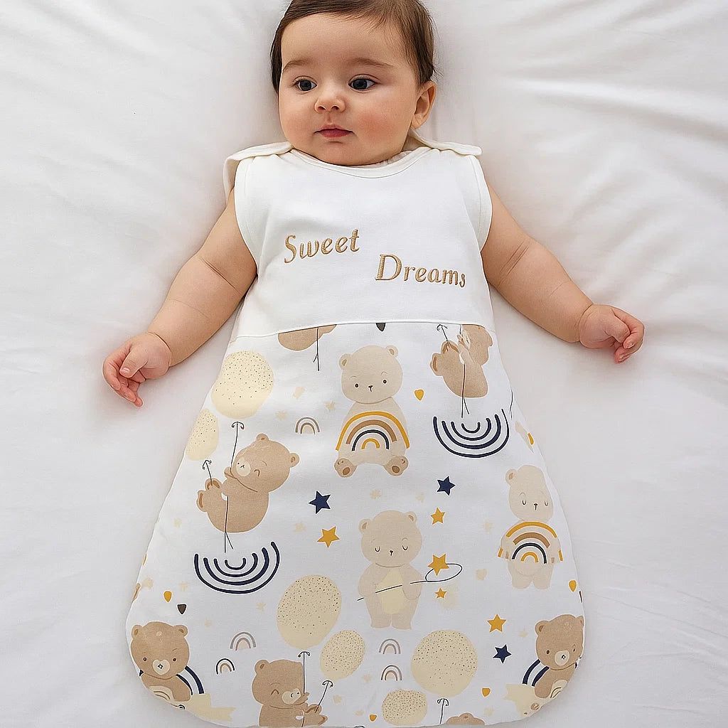 Детско спално чувалче с цип от щампиран ранфорс Мече с балони
