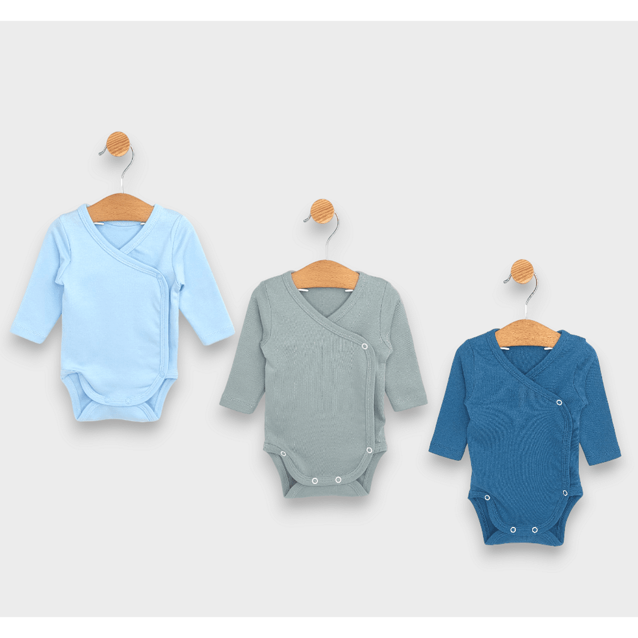 • Комплект от три бодита в син, син океан и млечно зелен.