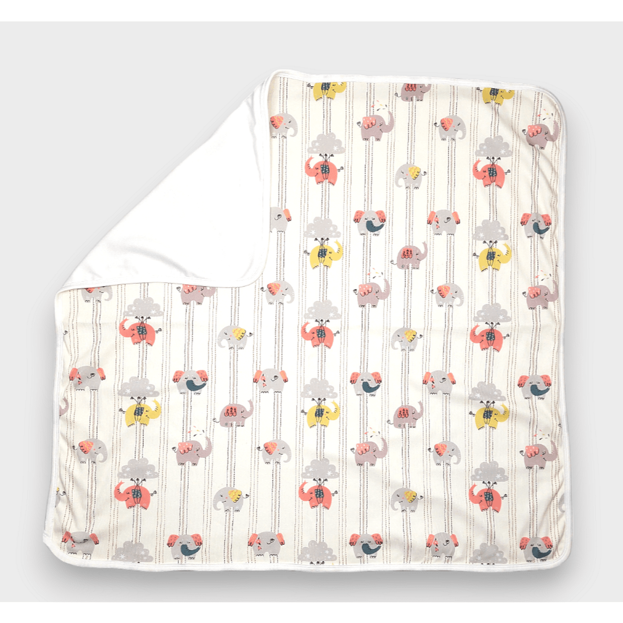 Бебешка пелена Слончета ще ви е необходима още от първите дни на бебето. Може да се слага на подложката за преповиване, като предпазна пелена между бебето и околния свят през първите месеци, като завивка, по време на къпане, както и като защита върху коша за новородено или седалката на количката. Бебешката пелена е изработена от мека и деликатна памучна материя. Декорирана с нежна картинка в пастелни цветове. Подходяща както за вкъщи, така и за разходка навън.