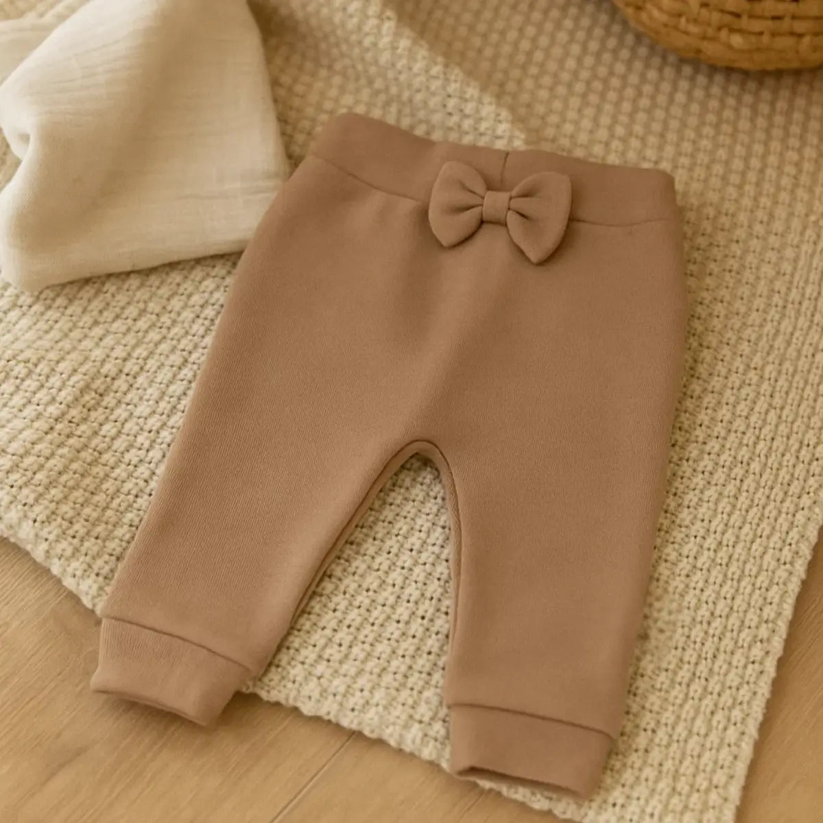 С този панталон детето ще е спокойно и ще се наслади на чудесните игри и разходки! Отлично се съчетава с всеки тип тениски и блузки. Приятна памучна материя, с панделка и ластик на талията.