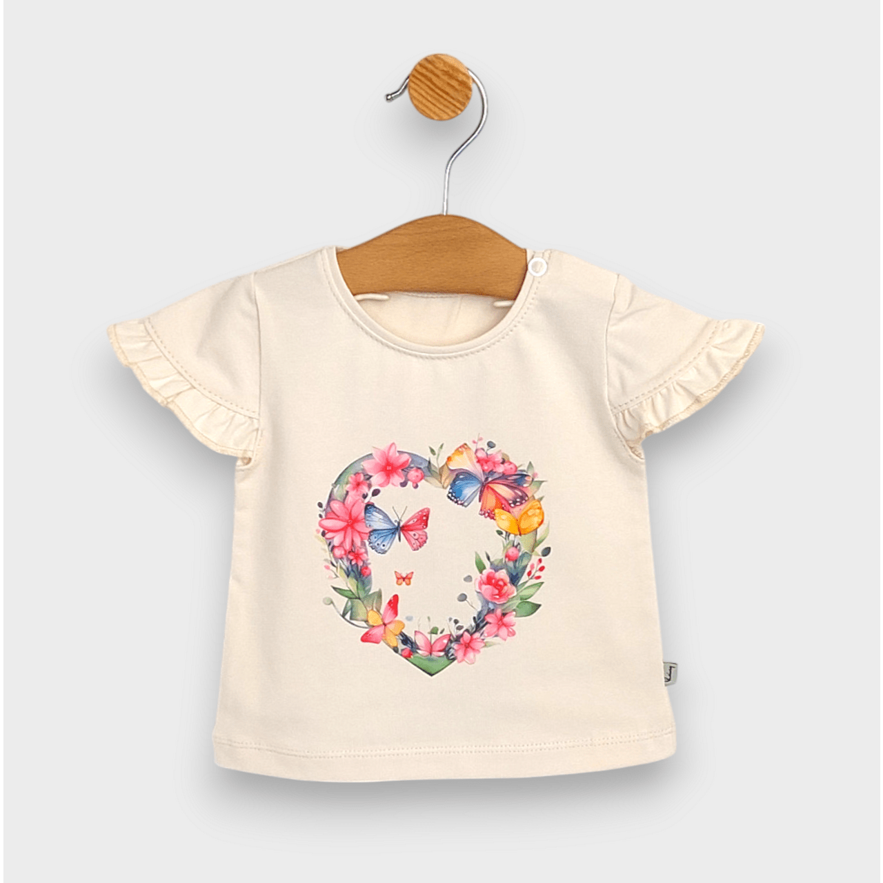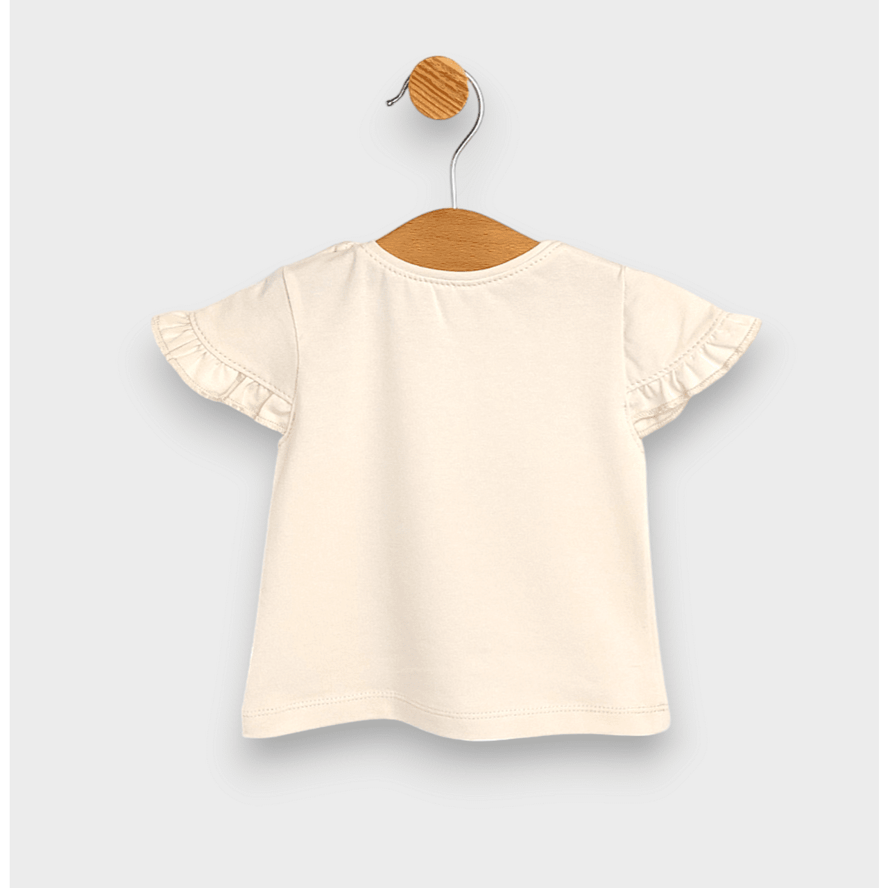 Защо да не добавим малко слънце в облечените дни с "Rainy Бебешка блуза с къс ръкав"? Тази очарователна блузка в нежен нюанс е идеалният избор за вашето мъниче, предлагайки комфорт и стил в едно.