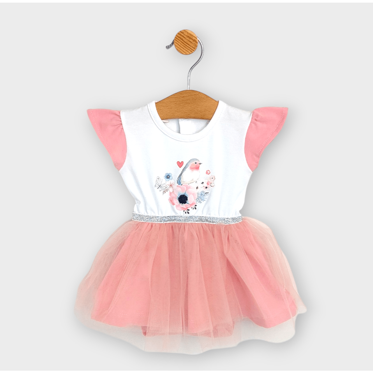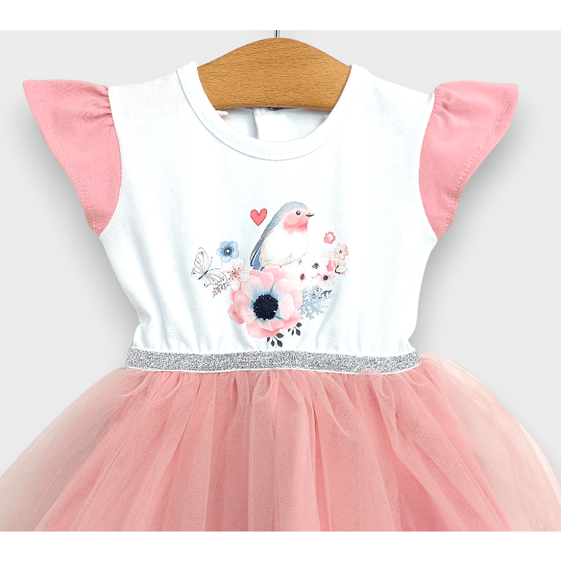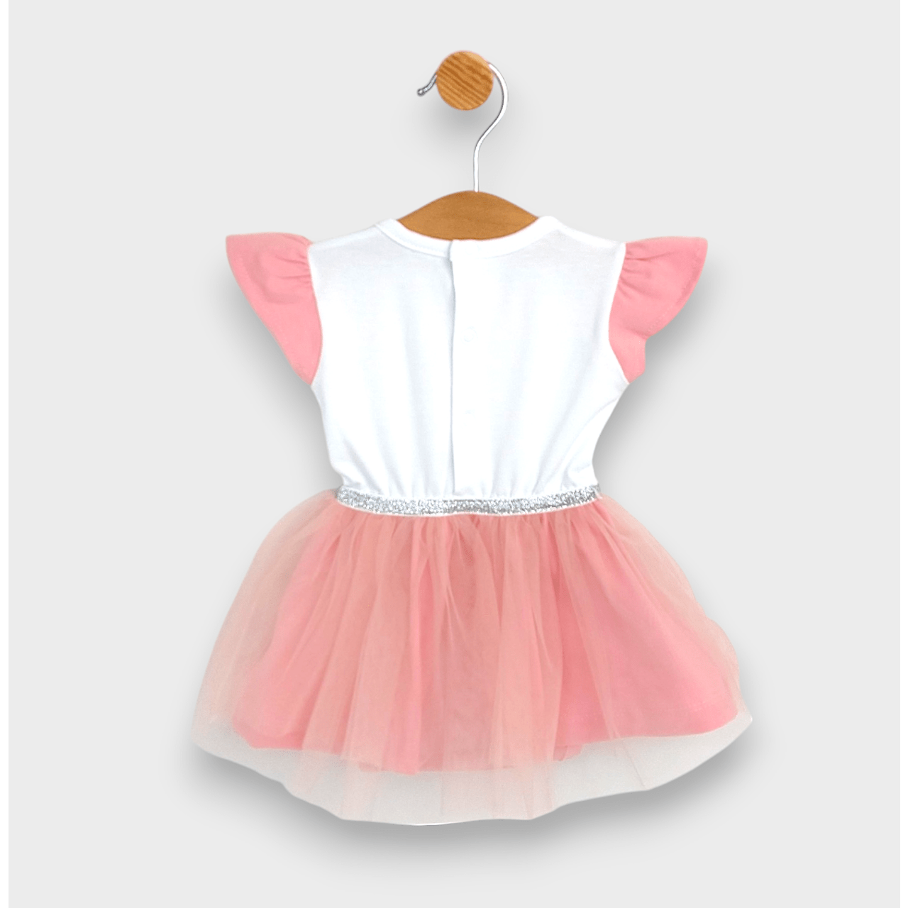 Тази очарователна бебешка боди-рокля е създадено с мисъл за най-малките модни икони от 56 до 80 см. Изработено от висококачествени материали, тя гарантира мекота и удобство за нежната бебешка кожа. Добавеният тюл придава игривост и елегантност, а съпътстващата диадема завършва визията за специален повод или семейно тържество.