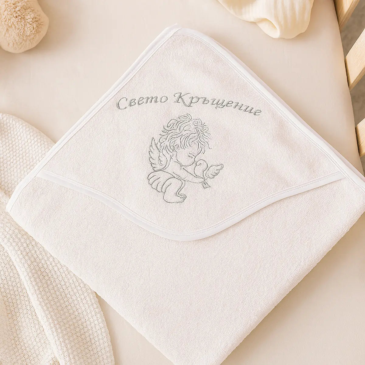 Заобиколете вашето мъниче с мекотата и топлината на "Rainy Бебешка хавлия с качулка 90х90 см. Свето Кръщение бял" след всяка баня! Представяме ви идеалния спътник за нежната кожа на вашето бебе, който ще превърне къпането в истинско удоволствие.