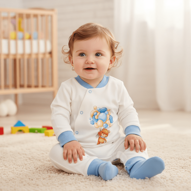Този гащеризон не е просто дреха, той е топла прегръдка за вашето дете и спокойствие за вас. Подарете на вашето малко съкровище топлина и защита с "Rainy Бебешки гащеризон Меченце с балони син", защото вашето бебе заслужава само най-доброто.