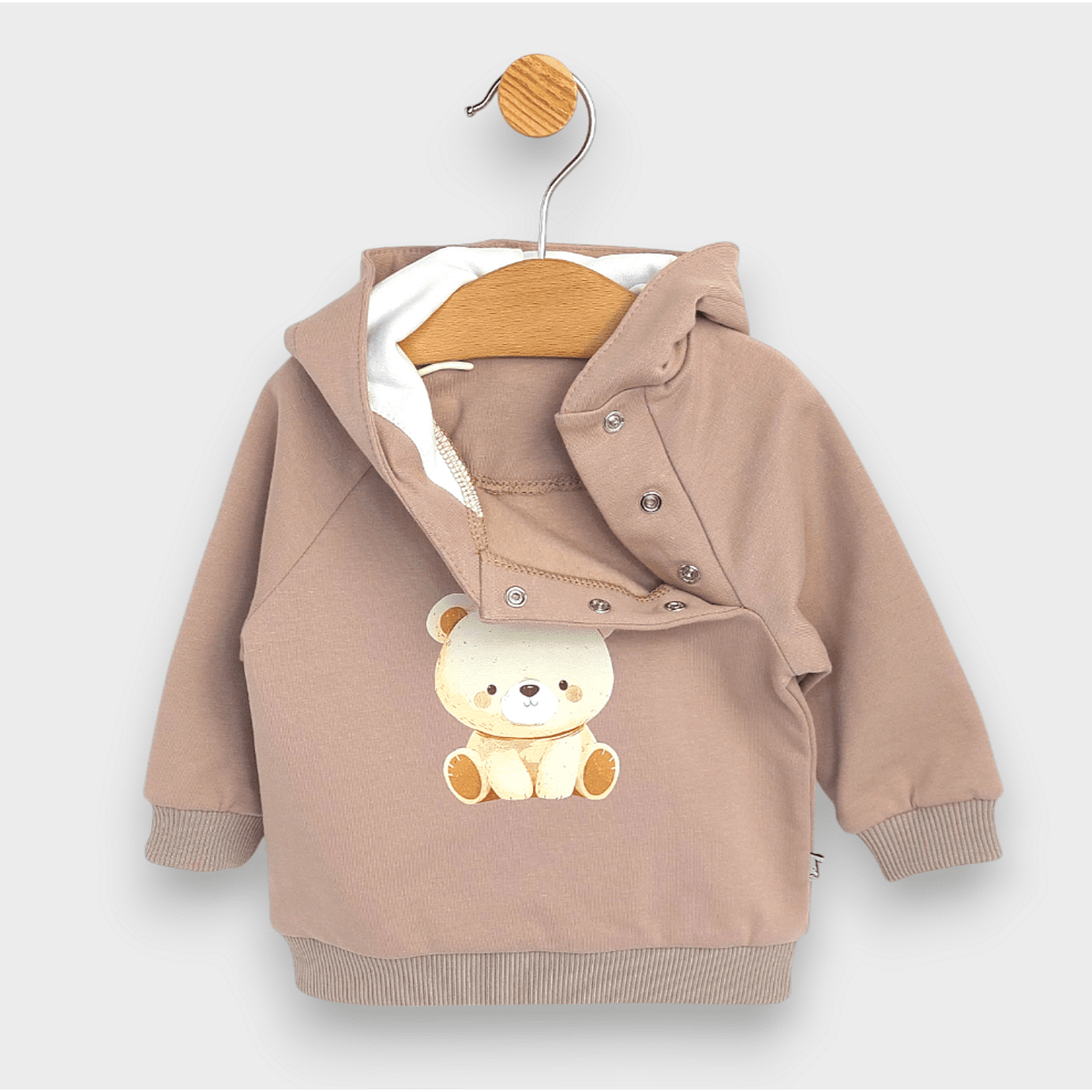 Изработен от висококачествени материали, този комплект е идеалният избор за вашето бебе от 62 до 92 см. Включващ меко худи с дълъг ръкав и удобни панталони, той осигурява пълна свобода на движение и комфорт през целия ден. Цветът допринася за елегантен и уютен външен вид.