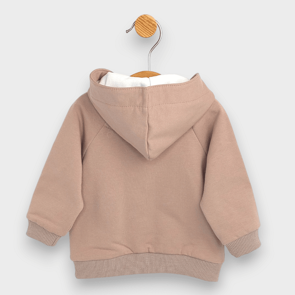 Бебешки комплект 2 части от нежна и мека материя в пастелни цветове. Комплекта включва худи с качулка, джобчета и удобно закопчаване и панталон с ластик. Бебешкия комплект се предлага от 2 до 24 месечна възраст. Произведено от българския бранд Rainy.