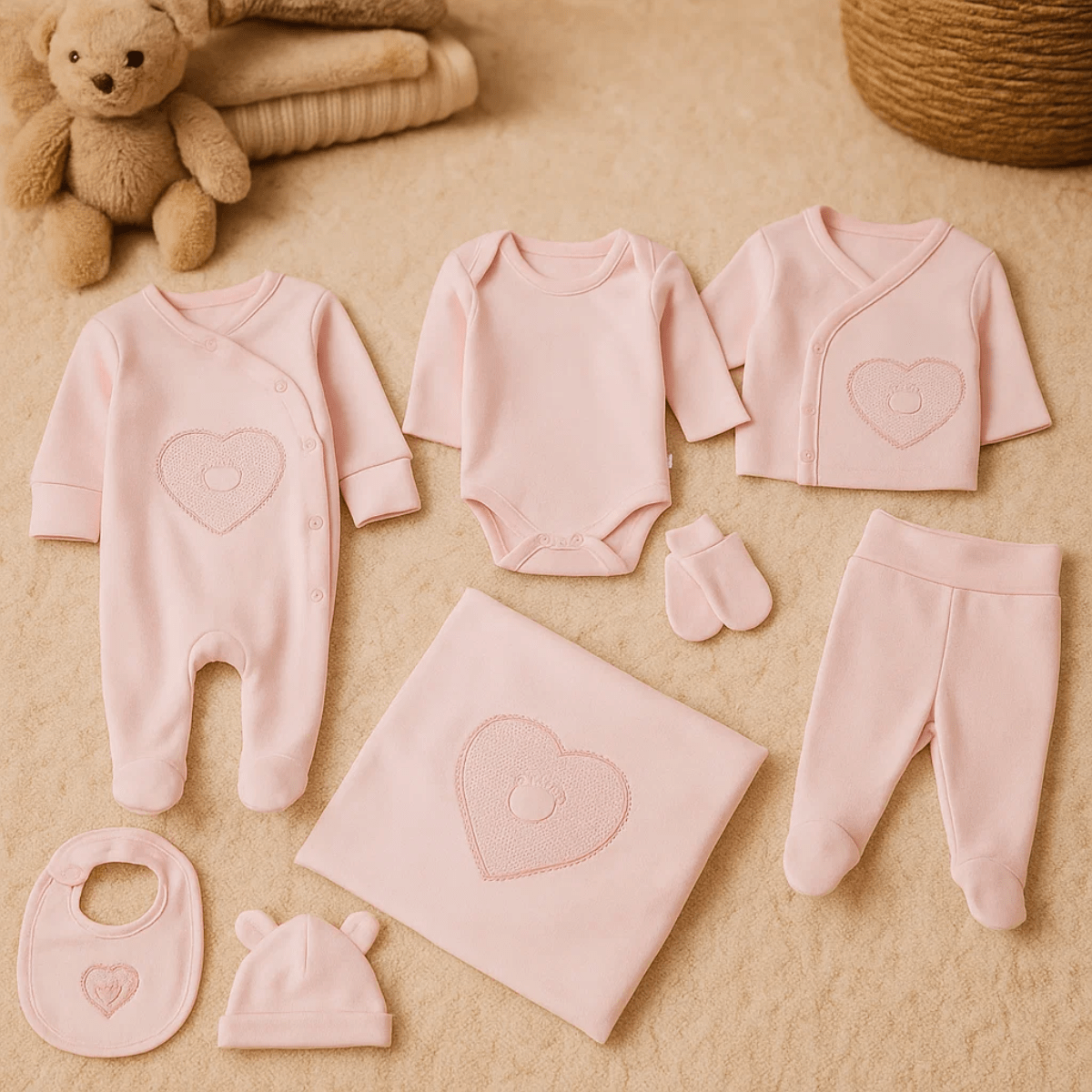 Има ли нещо по-вълнуващо от първите дни на новороденото у дома? За тези незабравими моменти, "Rainy Бебешки комплект за изписване 8ч. Сърце с мече" предлага всичко необходимо за малкия член на семейството. Създаден с любов и мисъл за комфорта на бебето, този комплект е идеалният избор за първите дни от живота му.