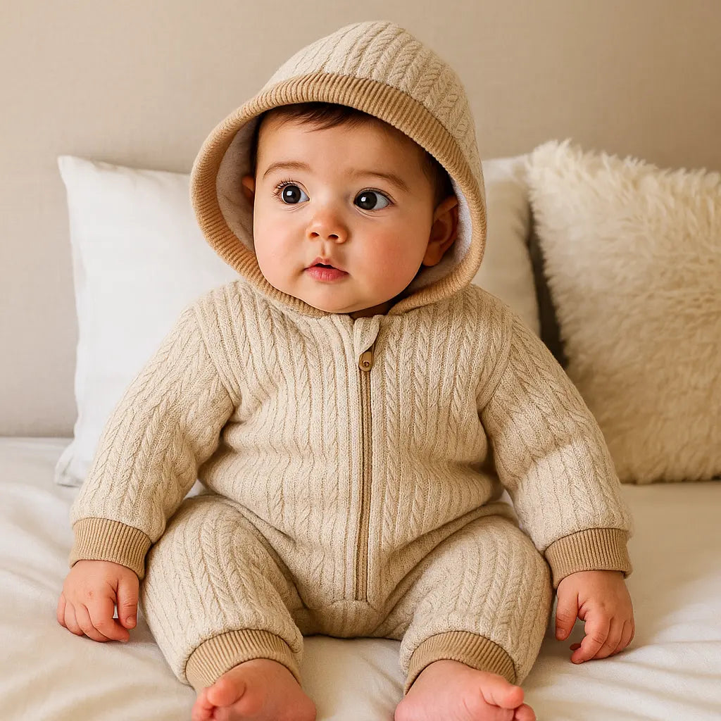 Избирайки "Rainy Бебешки плетен гащеризон", вие инвестирате не само в качеството и удобството на вашето дете, но и в стилна и практична дреха, която може да се носи както навън, така и у дома. Подарете на вашето бебе топлината, от която се нуждае, и стил, който заслужава!