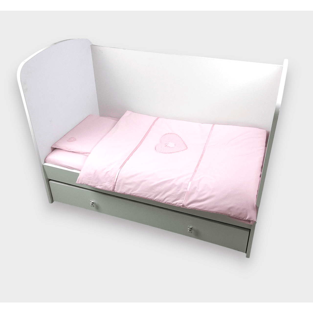 Бебешки спален комплект Сърце с мече е изработен от висококачествени материали в свежи цветове, които да внасят уют в детската стая. Дизайнът е стилен и оригинален. Комплекта ще пренесе малкото Ви съкровище в света на приказните сънища с лекота.