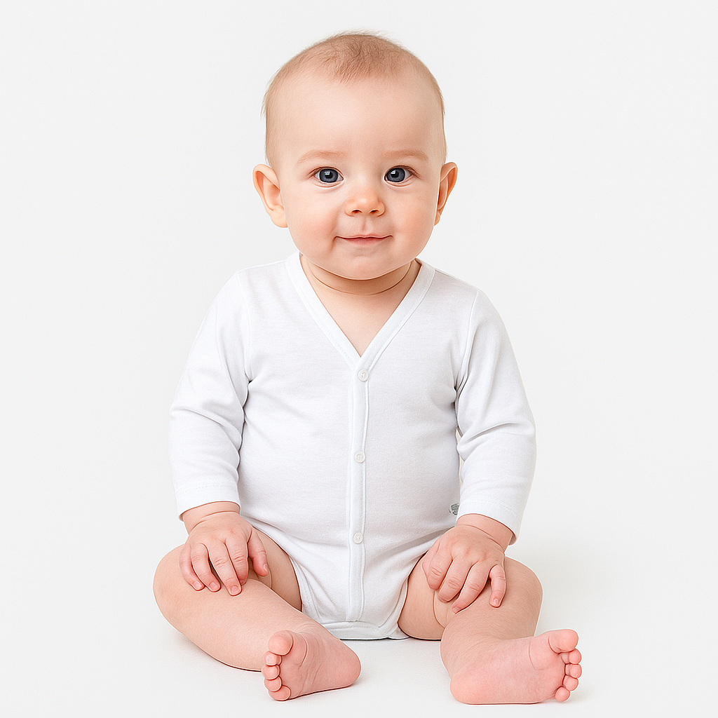 Бебешко боди за новородено Bianca, за момче и момиче, с дълъг ръкав и предно закопчаване от бяло трико от нежна и мека материя в пастелни цветове. Удобно закопчаване, посредством тик-так копчета за лесна смяна на пелени. Изработена от 100% памучна материя, щадяща деликатната бебешка кожа. Бебешкото боди се предлага от новородено до 12 месечна възраст. Произведено от българския бранд Rainy.