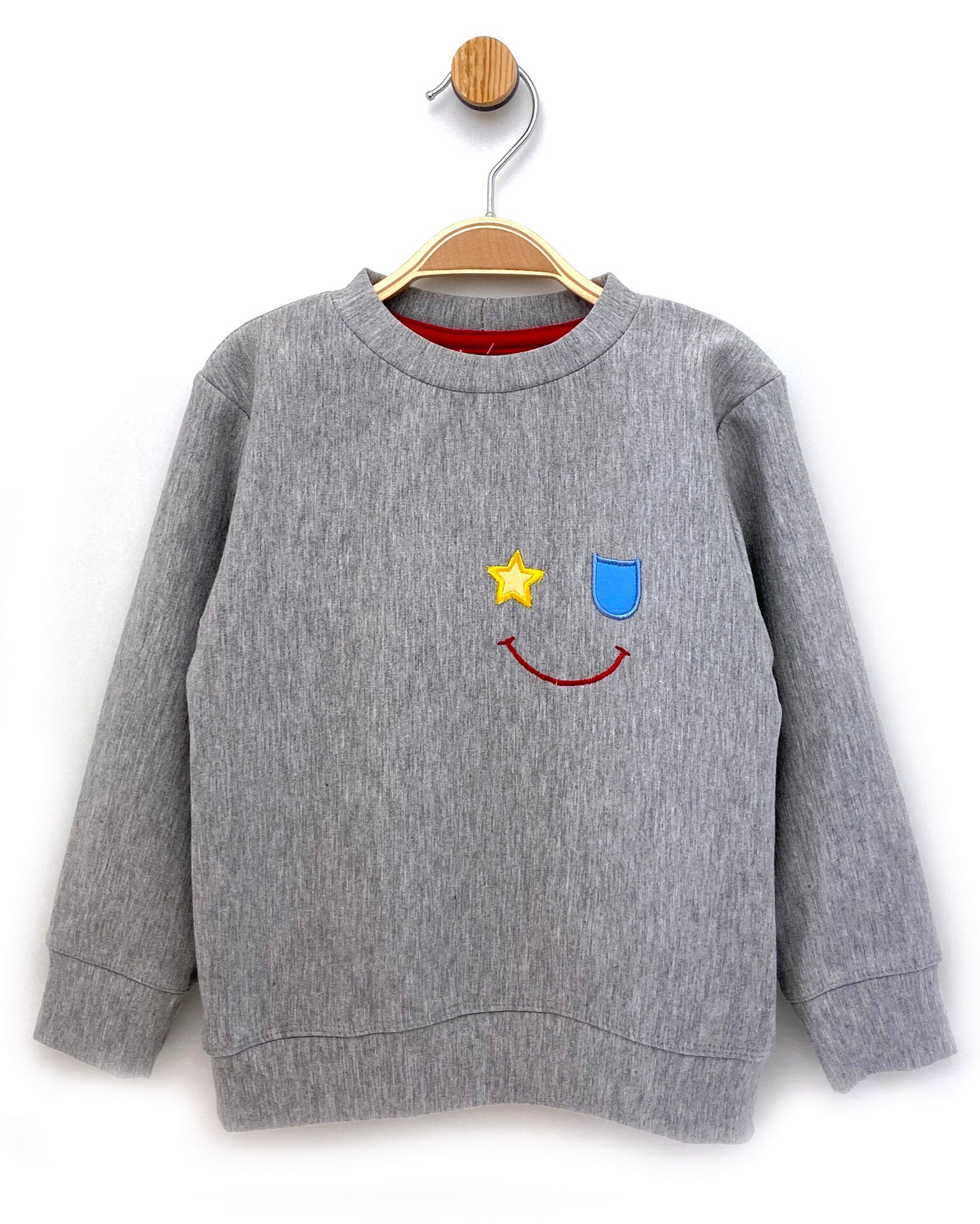 Детска блуза от ватирано трико с дълъг ръкав и бродерия Усмивка