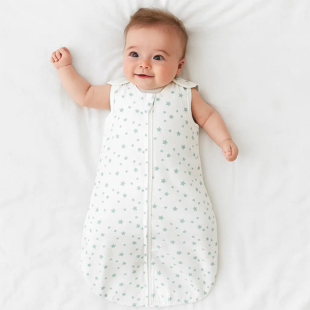 Детско спално чувалче Класик с цип от щампиран ранфорс Мента звезди.