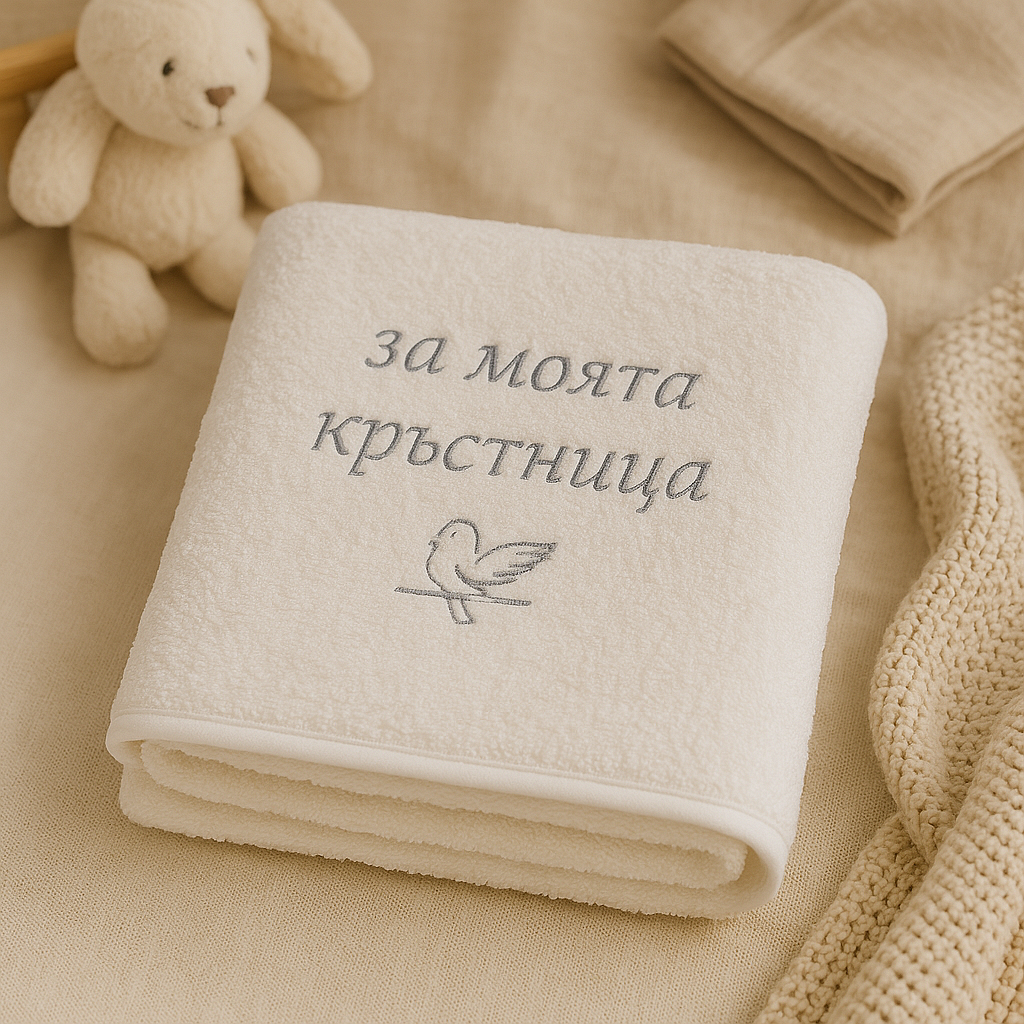 Хавлиена кърпа За моята кръстница е истинско удоволствие за децата. Изработена е от висококачествен памук, който има силно абсорбиращи свойства и в същото време е нежен към деликатната бебешка и детска кожа.