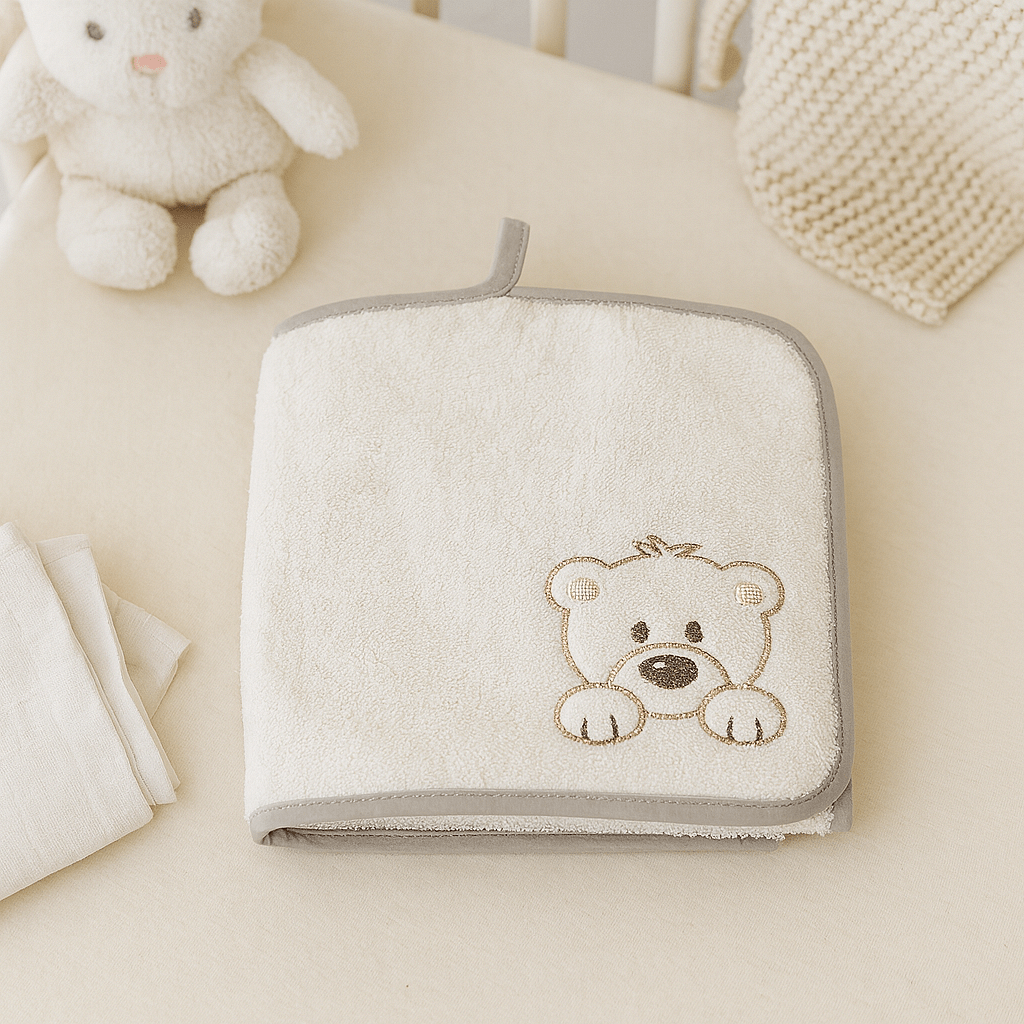 Хавлиена кърпа Мече е истинско удоволствие за децата. Изработена е от висококачествен памук, който има силно абсорбиращи свойства и в същото време е нежен към деликатната бебешка и детска кожа.