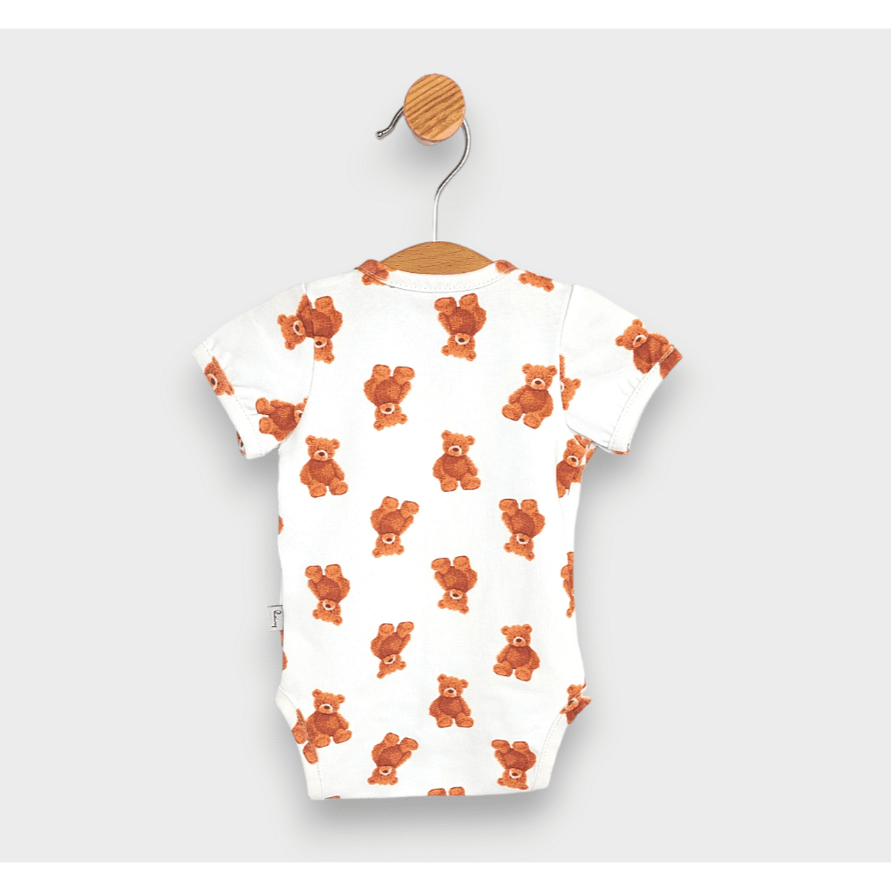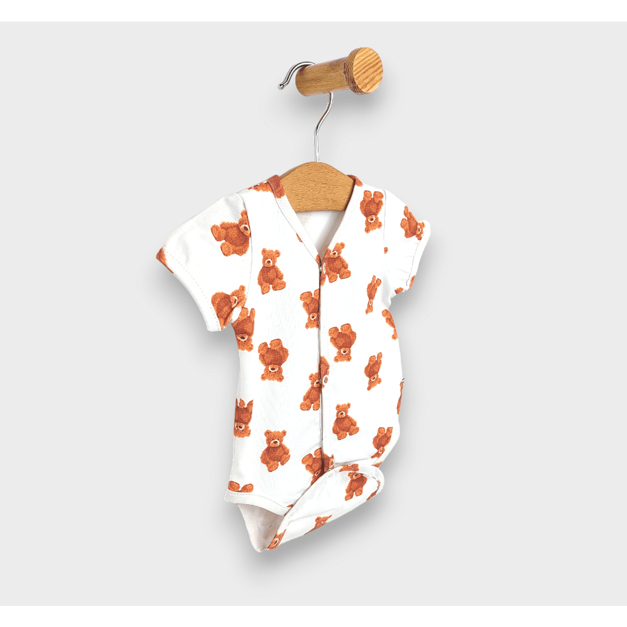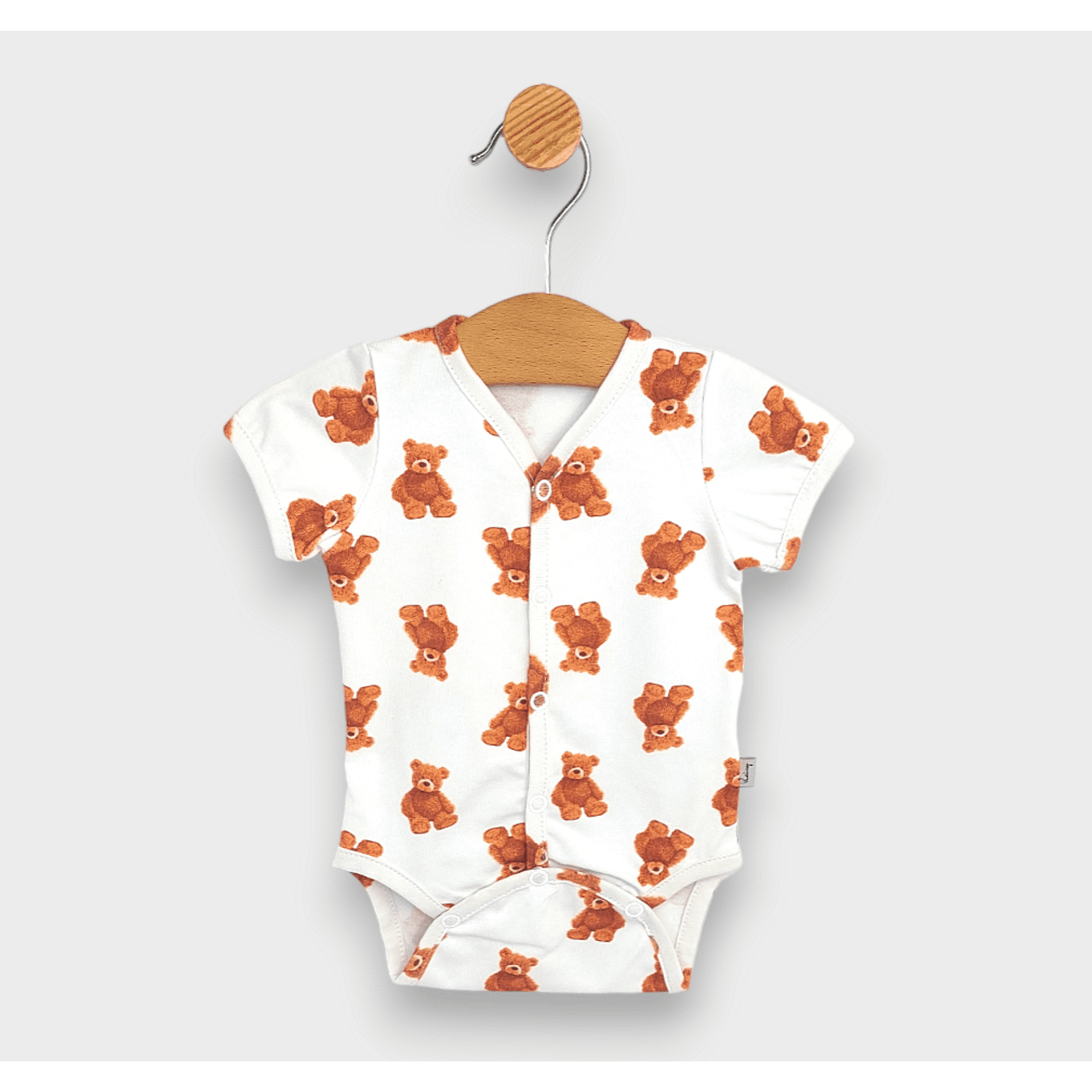 Бебешко боди с къс ръкав от нежна и мека материя в пастелни цветове. Удобно закопчаване, посредством тик-так копчета за лесна смяна на пелени. Изработена от памучна материя, щадяща деликатната бебешка кожа. Бебешкото боди се предлага от новородено до 12 месечна възраст. Произведено от българския бранд Rainy.